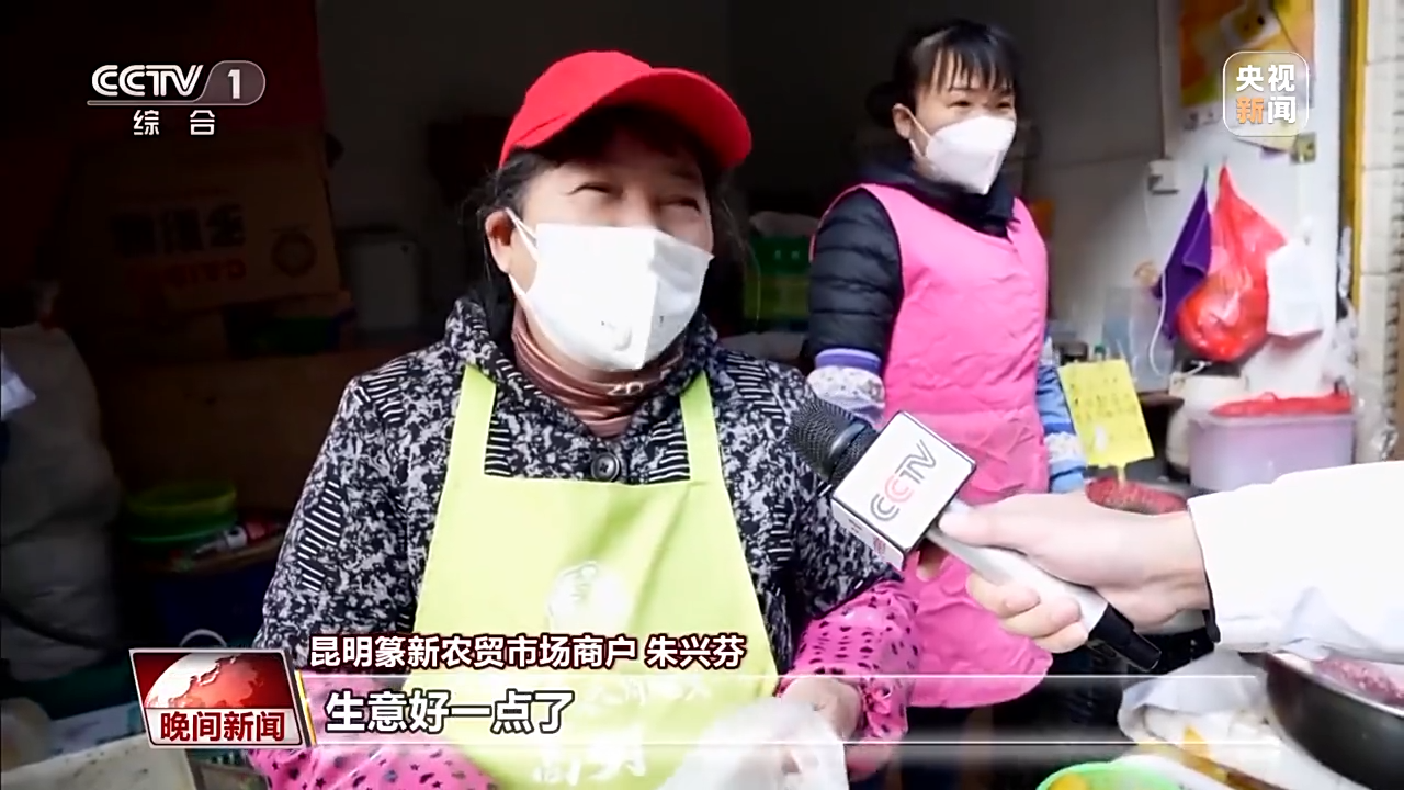 昆明篆新農(nóng)貿(mào)市場(chǎng)商戶 朱興芬:生意好一點(diǎn)了,只要越來越好就行了,一天比一天好就行了。