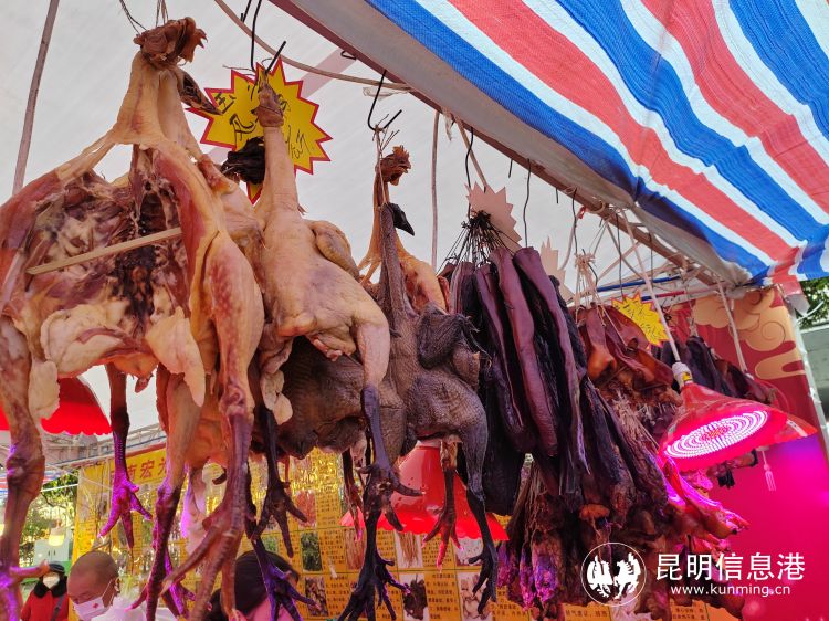 在活動(dòng)現(xiàn)場,商戶們擺開對(duì)聯(lián)、彩燈、雞、鴨、鵝、糖果等各色年貨商攤,將濃濃的年味打造得隆重而多彩。市民們開始涌上街頭,紛紛購買年貨。