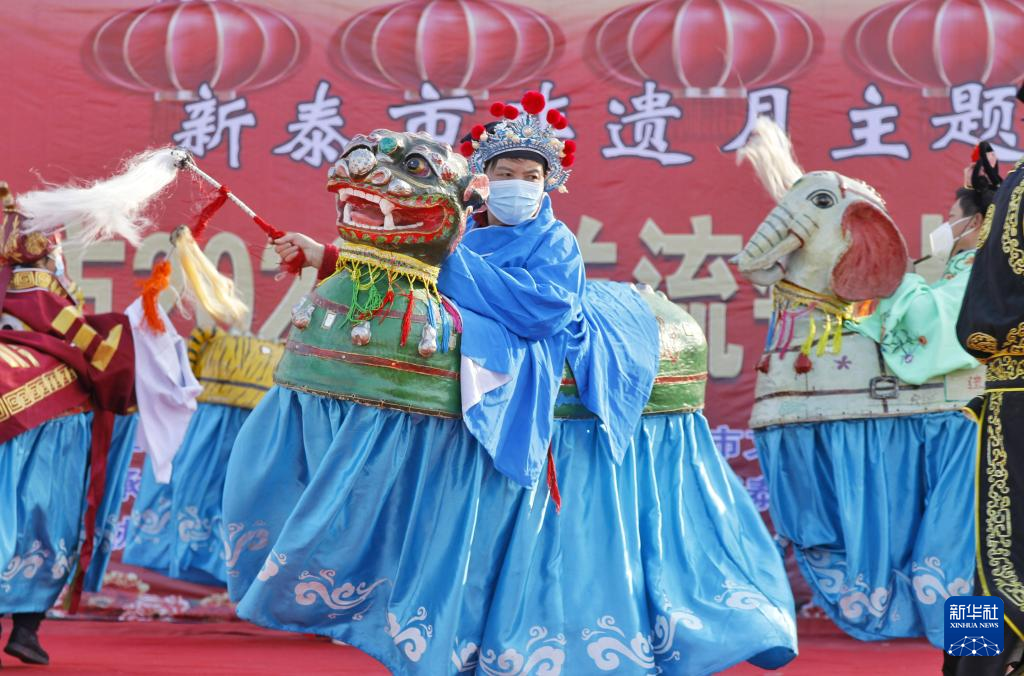 1月10號,在羊流鎮(zhèn)大洼村,演員進(jìn)行非遺“百獸圖”表演。新華社發(fā)(陳陽/攝)