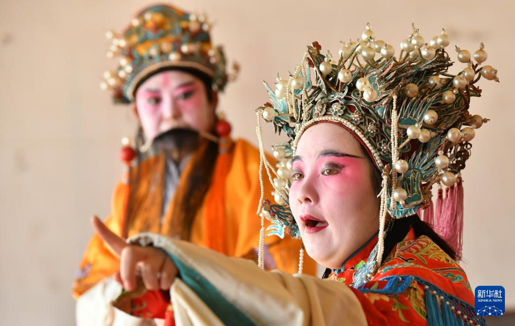 1月10日,在任丘市梁召鎮(zhèn)東江村,東江老調(diào)演員在排練。新華社發(fā)(苑立偉/攝)