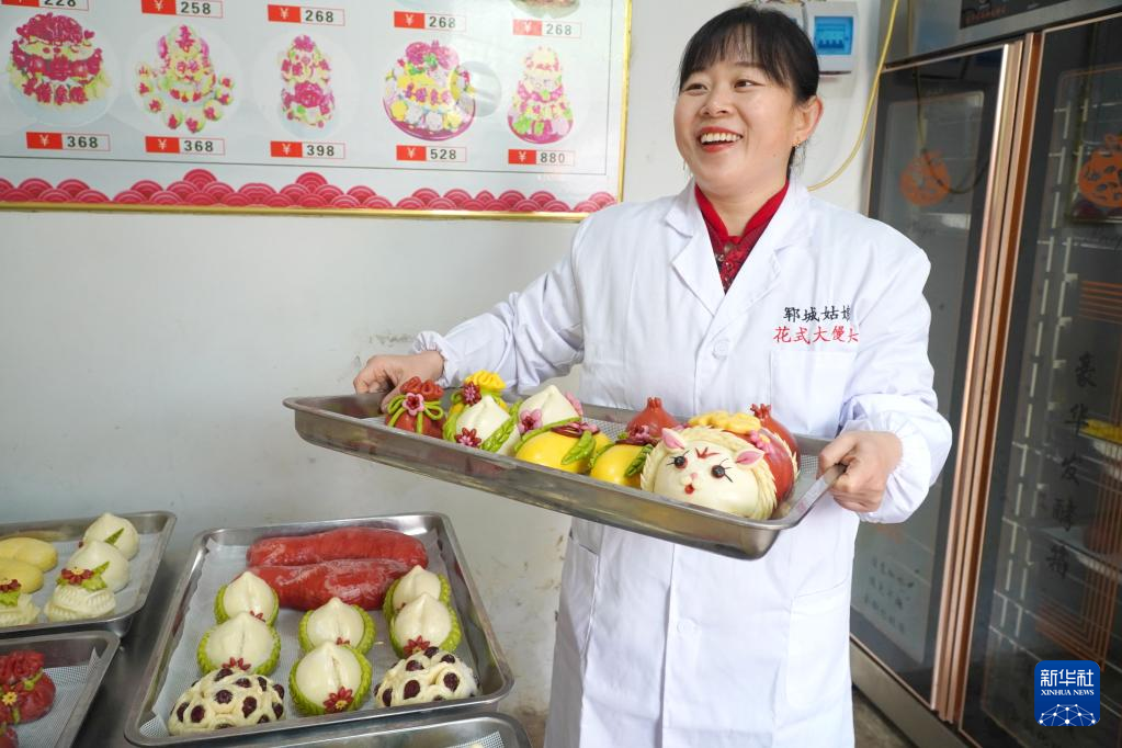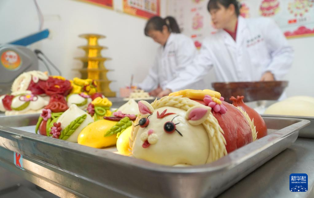 春節(jié)臨近,山東省鄆城縣的農(nóng)民趕制花饃等傳統(tǒng)面食,供應(yīng)節(jié)日市場。花饃造型別致、色彩豐富,為即將到來的新春佳節(jié)增添了濃濃的喜慶氣氛。