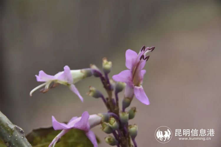 據(jù)了解,美麗桐屬于美麗桐科美麗桐屬植物,是一種落葉大喬木,常呈現(xiàn)為半附生的假藤本狀,在我國主要生長于云南中部及南部海拔2500米以下的疏林中。該植物具有大型的單葉對(duì)生、圓錐聚傘花序、不規(guī)則裂片的鐘狀花萼、室間開裂的蒴果等性狀。美麗桐樹形優(yōu)美、花色艷麗、葉型獨(dú)特,其花期為11月至次年1月。