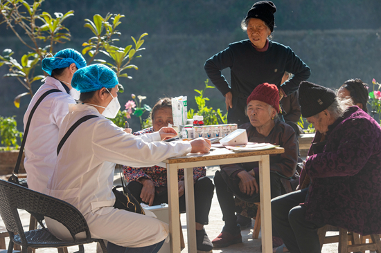 1月7日,貴州黔東南,醫(yī)務(wù)人員進(jìn)村入戶開展義診巡診。視覺中國供圖