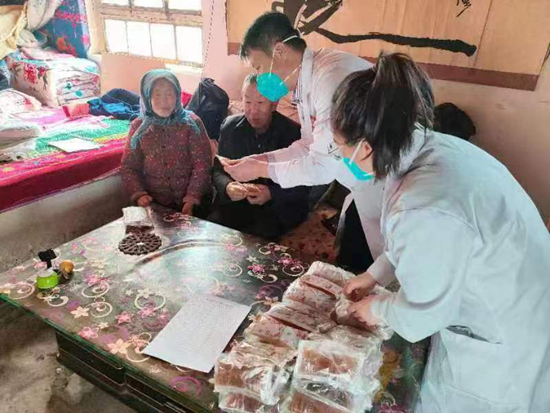 甘肅省武威市古浪縣定寧鎮(zhèn)基層醫(yī)生送藥上門。受訪者供圖