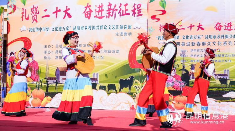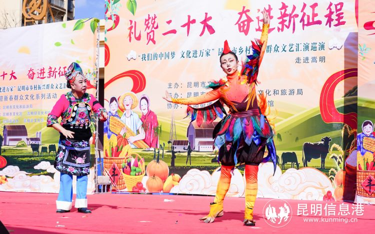 昆明信息港訊 正值新春佳節(jié)來臨之際,為充分發(fā)揮文化在助力鄉(xiāng)村振興中的積極作用,“我們的中國夢(mèng)文化進(jìn)萬家”昆明市鄉(xiāng)村振興群眾文藝匯演巡演活動(dòng)于1月11日—13日走進(jìn)嵩明縣、尋甸縣、東川區(qū)。本次巡演活動(dòng)由昆明市文化和旅游局主辦,昆明市文化館和各縣(市)區(qū)文化和旅游局承辦,嵩明縣、尋甸縣、東川區(qū)文化館協(xié)辦,為昆明市的父老鄉(xiāng)親們送上豐富多彩的文化賀禮。