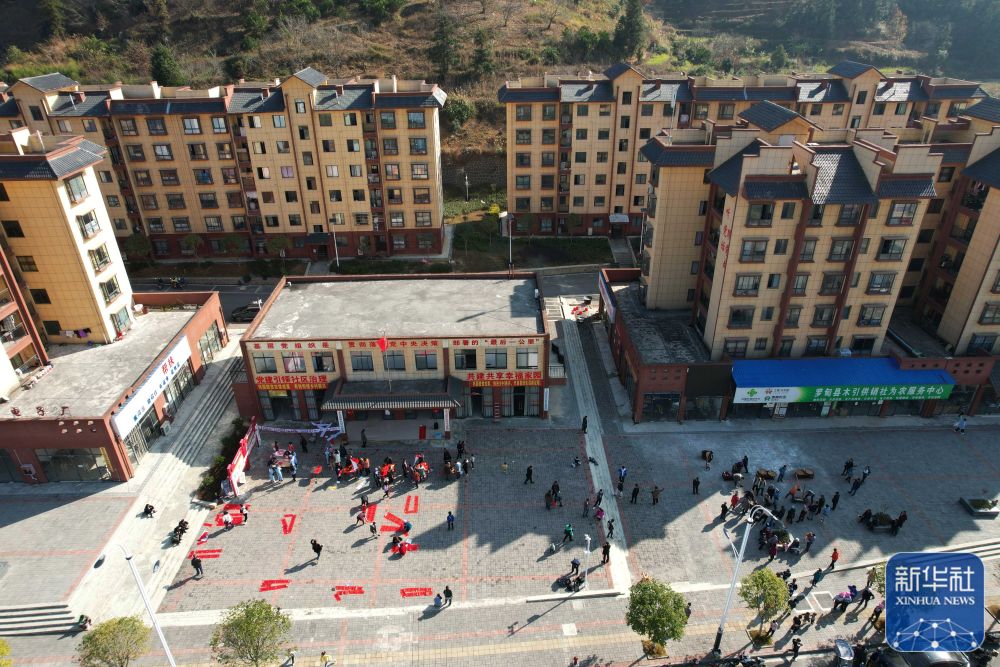↑1月13日拍攝的羅甸縣木引鎮(zhèn)康夢家園迎春活動現(xiàn)場(無人機(jī)照片)。新華社發(fā)(史傳鴻攝)