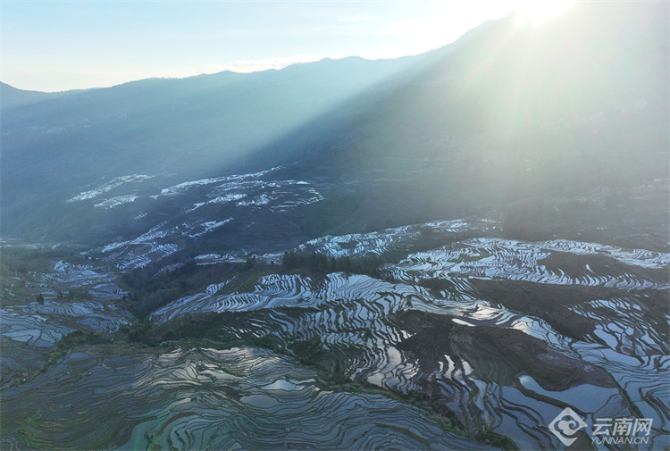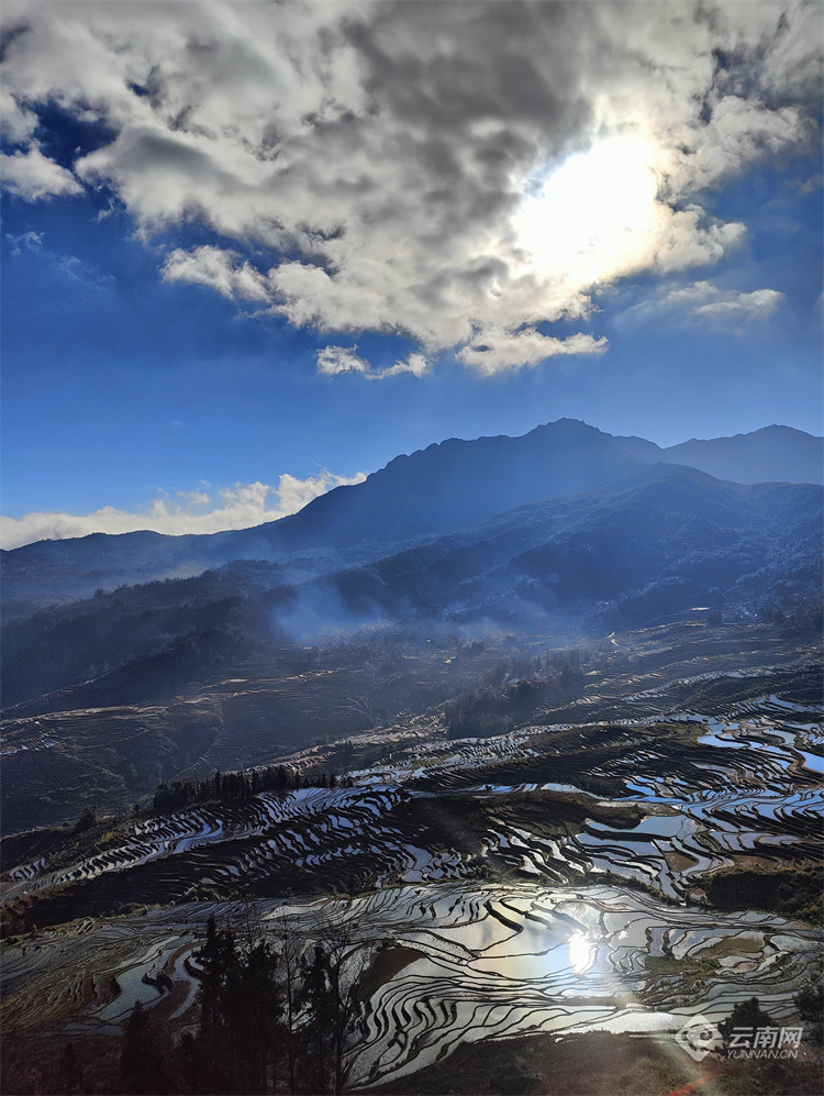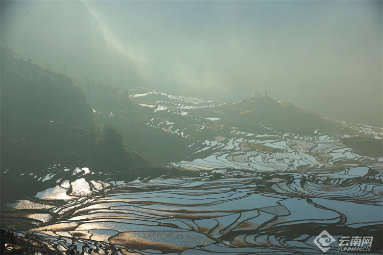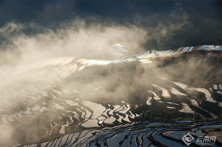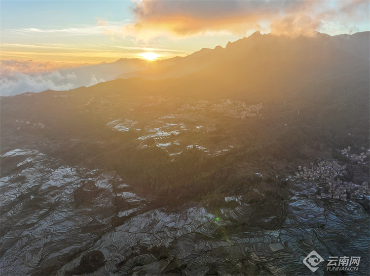 多依樹梯田,位于云南省紅河哈尼族彝族自治州的元陽(yáng)縣,屬于世界文化景觀遺產(chǎn)哈尼梯田的核心區(qū)。每年11月至次年4月,正是梯田的蓄水期,在光與影的映襯下,梯田變得色彩斑斕,像極了被揉碎的云彩忽明忽暗,又像羞澀的姑娘若隱若現(xiàn)。游客在多依樹看日出,儀態(tài)萬(wàn)千,瞬息萬(wàn)變,令人陶醉、驚嘆。(云南網(wǎng) 通訊員官佩琳 鄧嬌 攝影報(bào)道)