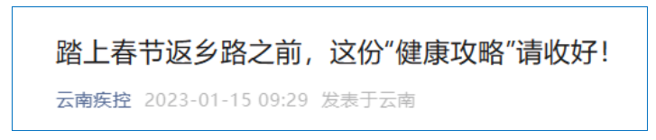 1月15日,“云南疾控”微信公眾號發(fā)布春節(jié)返鄉(xiāng)“健康攻略”。