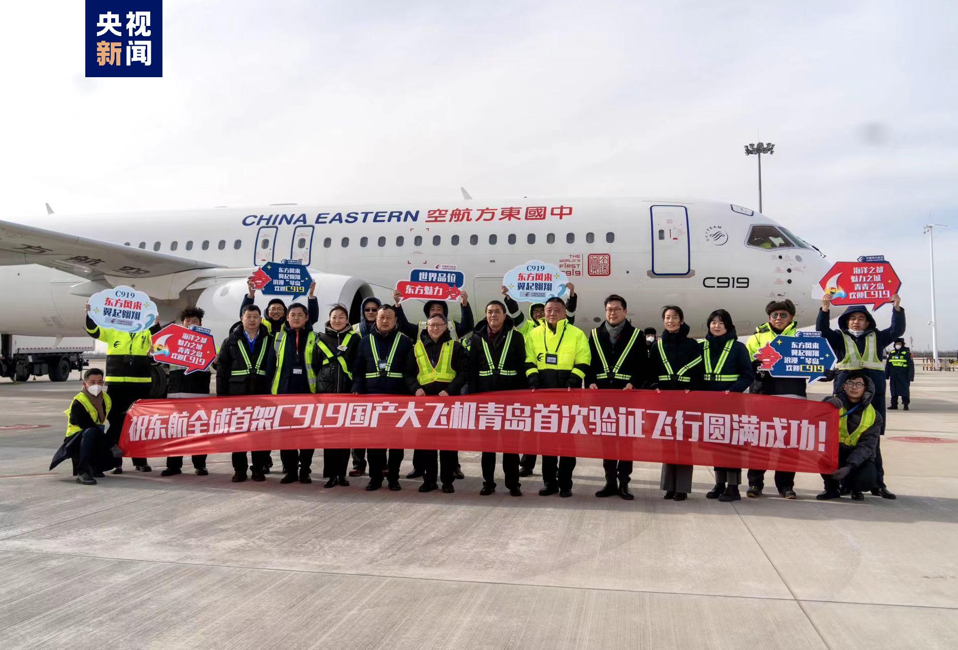 1月15日11時(shí)14分,航班號為MU7811的東航國產(chǎn)C919飛機(jī)順利飛抵青島。此次從上海虹橋國際機(jī)場飛抵青島膠東國際機(jī)場執(zhí)行驗(yàn)證飛行,標(biāo)志著C919飛機(jī)100小時(shí)驗(yàn)證飛行再添新航點(diǎn)。