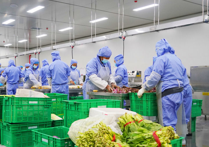 “立足食用菌產(chǎn)業(yè),我們建設(shè)了預(yù)制菜項(xiàng)目,目前凈菜加工、即食菜品加工車間已投入使用?!眹阊霃N(河北)預(yù)制食材有限公司副總經(jīng)理劉志遠(yuǎn)說,全部投產(chǎn)后可日產(chǎn)凈菜120噸、面食160噸、豆制品等即食菜品200噸,預(yù)計(jì)年銷售收入達(dá)12.5億元,帶動(dòng)就業(yè)400余人。