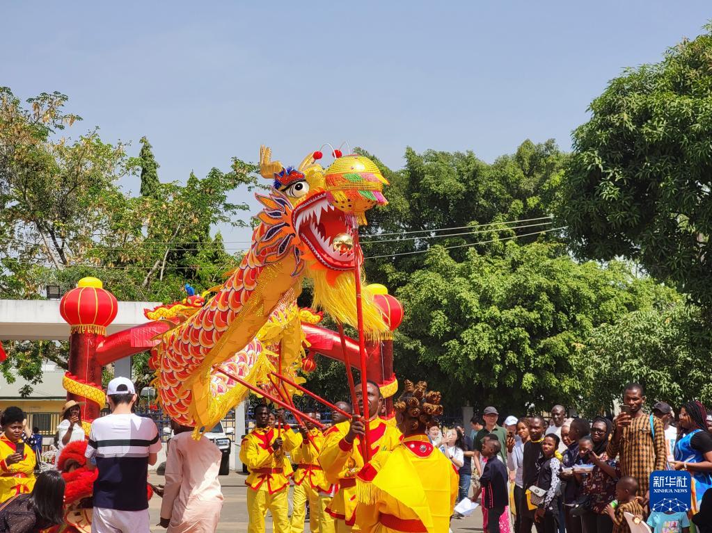 隨著長(zhǎng)長(zhǎng)的舞龍踩著鼓點(diǎn)進(jìn)入大院場(chǎng)地,現(xiàn)場(chǎng)氣氛被推向高潮。十幾名尼日利亞青年表演的舞龍贏得觀眾陣陣掌聲。