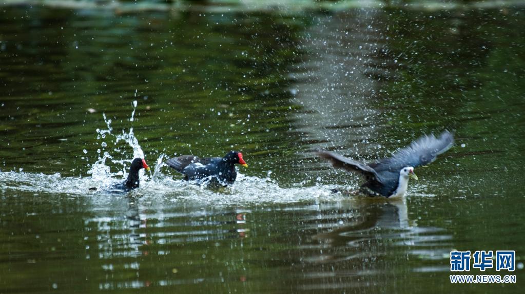 鳥兒在水中嬉戲(攝于1月11日)。