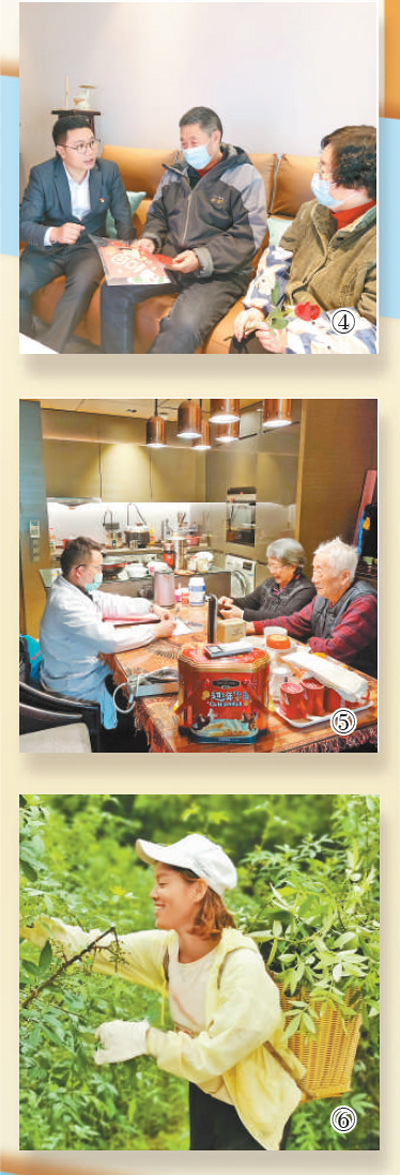 “阿姨,您千萬要控制飲食,減少碳水攝入?!迸D月二十三上午,江蘇省南京市建鄴區(qū)興隆社區(qū)衛(wèi)生服務(wù)中心全科醫(yī)生孫濱(見圖⑤左一,熊曉文攝)正在通過微信了解社區(qū)居民健康狀況,并叮囑日常注意事項。每天不間斷地接聽居民電話、回復健康咨詢信息是孫濱的工作常態(tài),無論什么時候,只要居民有需求,他都立刻解答。
