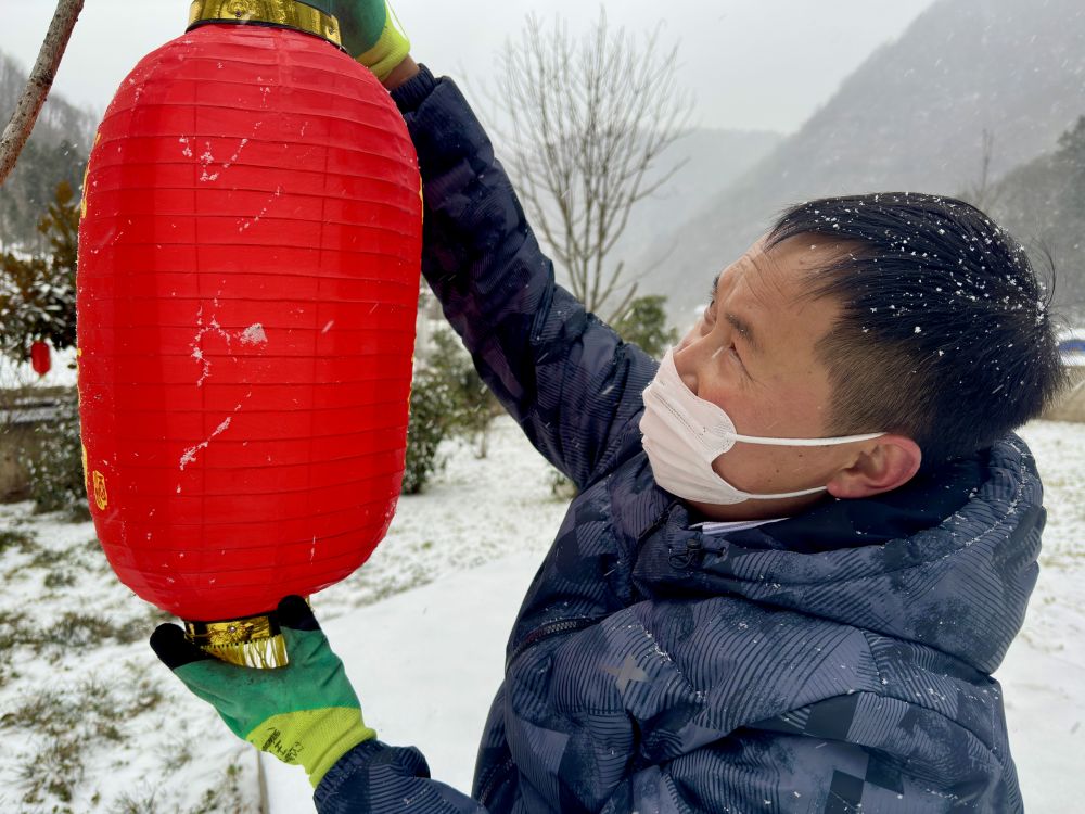 唐代軍在庭院里掛起紅燈籠。(新華社記者鄭昕 攝)