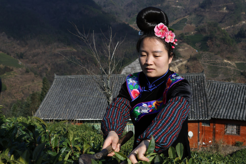 2023年1月10日,貴州省雷山縣西江鎮(zhèn)腳堯村村民毛花艷在管護茶園。新華社記者趙昭 攝