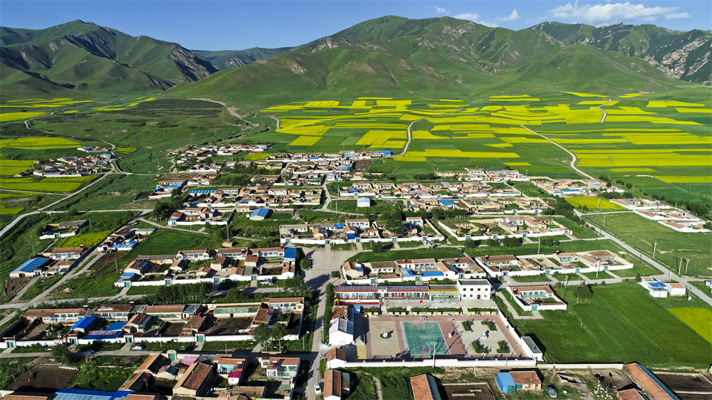 這是青海省海北藏族自治州海晏縣金灘鄉(xiāng)東達村夏日景色(無人機照片,資料照片)。新華社發(fā)(李勇/攝)
