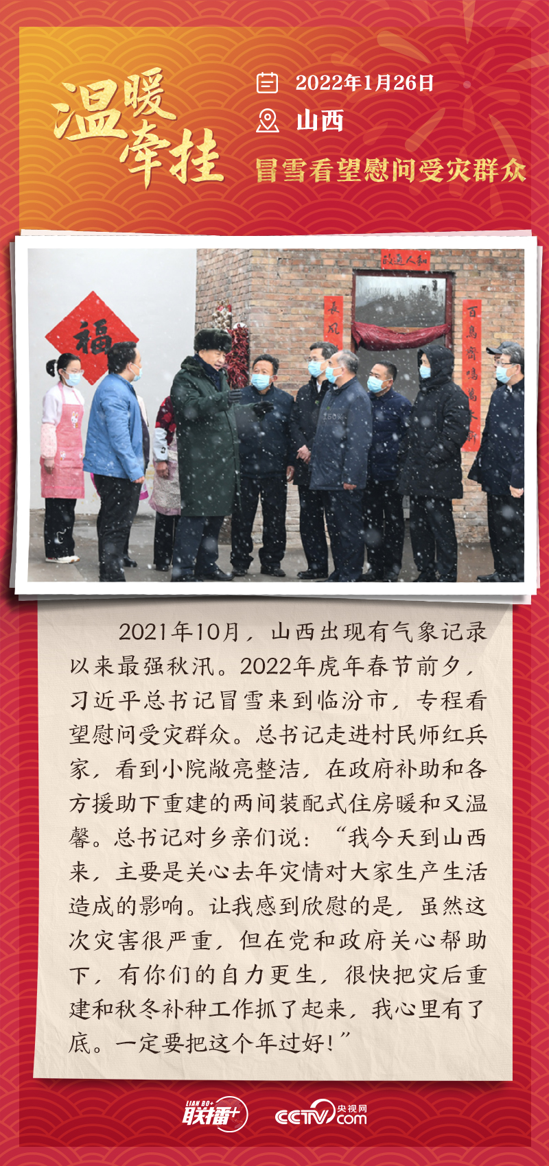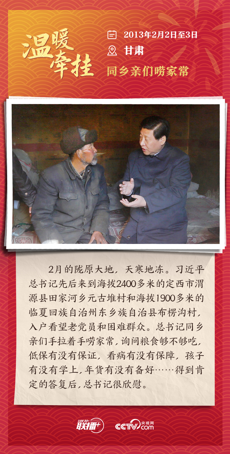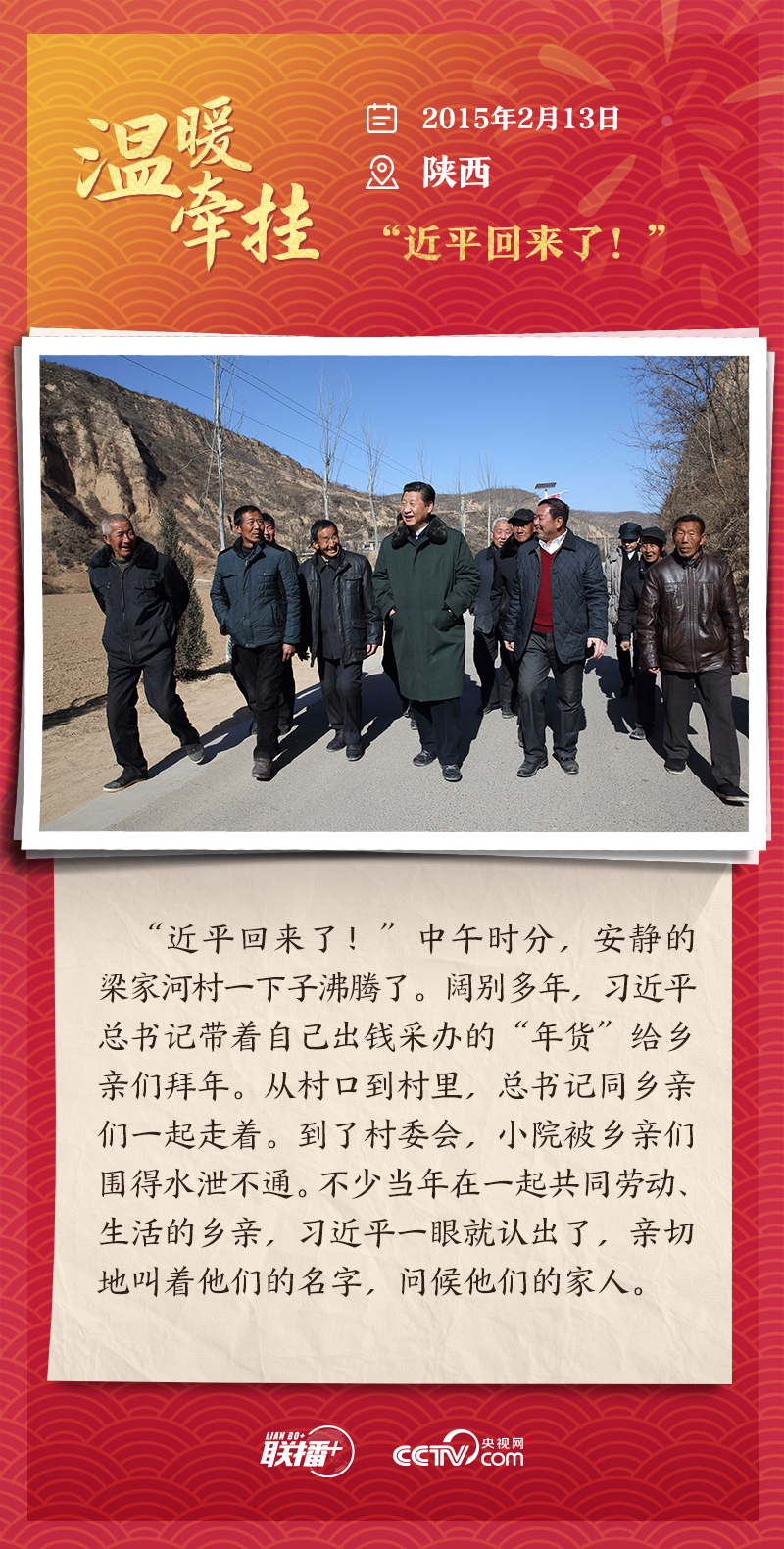 編者按:“大國之大,也有大國之重。千頭萬緒的事,說到底是千家萬戶的事?!睆?013年起,每逢春節(jié)前夕,習(xí)近平總書記都會來到群眾身邊,拉家常、問冷暖,聽民聲、送祝福。央視網(wǎng)《聯(lián)播+》特推出“溫暖牽掛”系列,與您一同重溫總書記與大家在一起的溫暖故事,感受濃濃的領(lǐng)袖情懷。