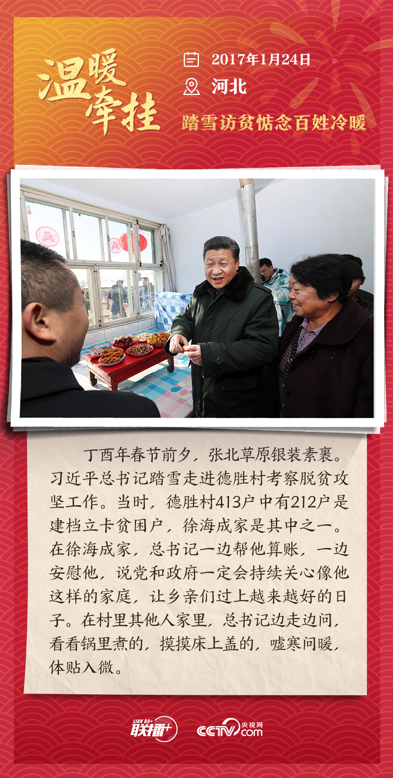 聯(lián)播+每到寒冬臘月,習(xí)近平總書記的身影都會如約出現(xiàn)在他牽掛的地方。翻過海拔3000多米的山梁,冒著零下30多攝氏度的嚴(yán)寒,轉(zhuǎn)換多種交通工具,一路顛簸、不辭辛苦,只為看到實情,“哪怕一天只看一個點(diǎn)”;貧困農(nóng)民、一線工人、孤寡老人、孤殘兒童……千千萬萬基層勞動者、普通老百姓,始終是他最牽掛的人。