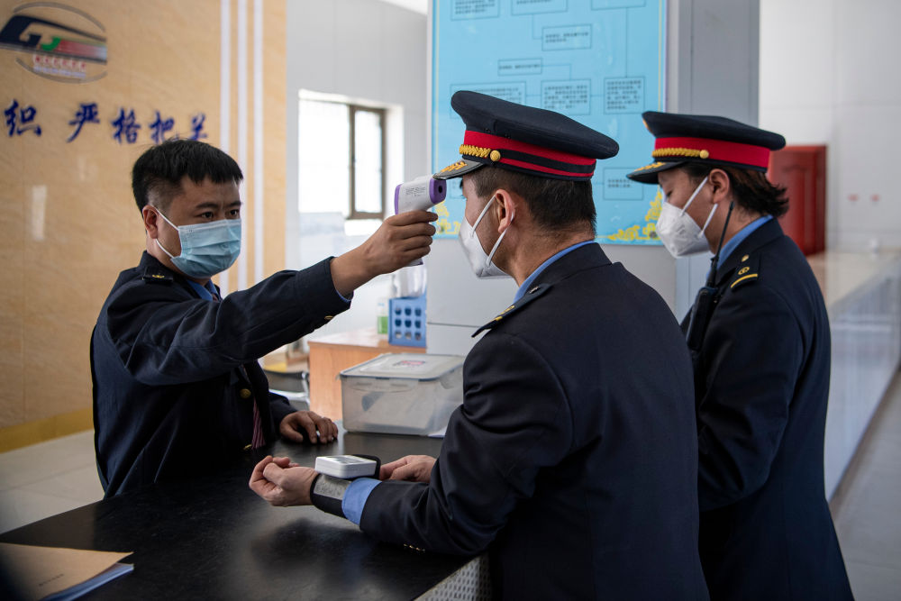 在拉薩機輛整備中心,黃起崗(中)在出勤前接受身體情況檢測(1月11日攝)。