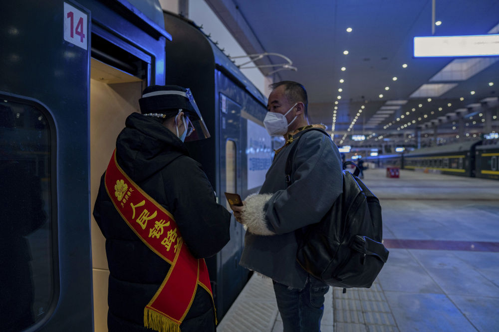 在拉薩火車站,黃起崗檢票上車,準備回家(1月16日攝)。