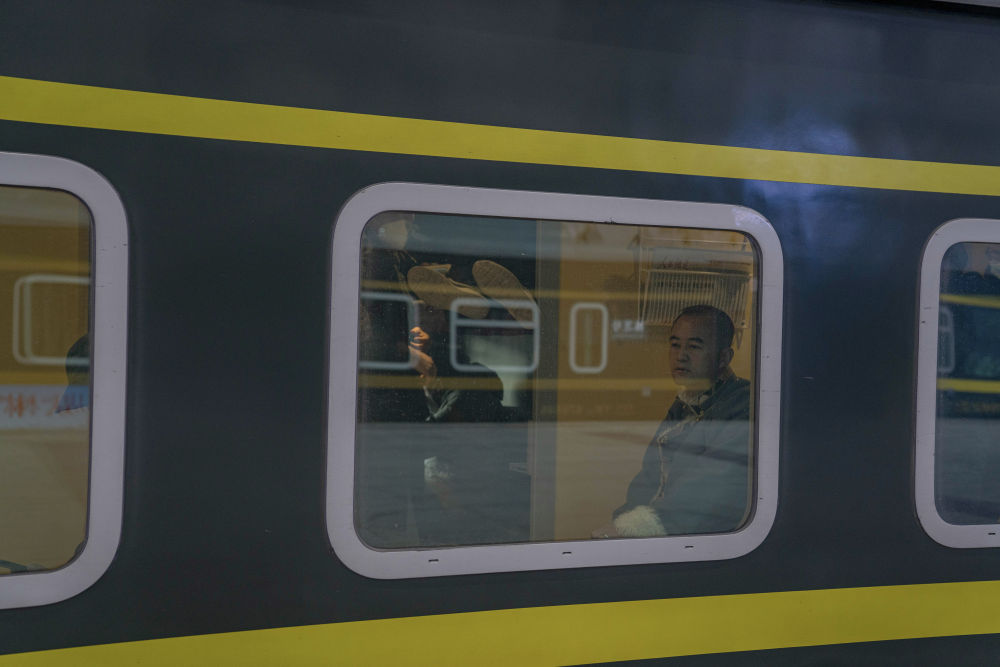 在拉薩火車站,黃起崗等待回家的火車發(fā)車(1月16日攝)。