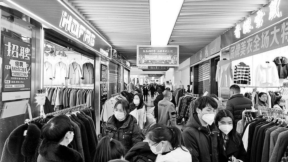 “疫情以來(lái)沒(méi)見(jiàn)過(guò)這么熱鬧的場(chǎng)景,生意比疫情前還好,前段時(shí)間積壓的庫(kù)存全都清空了,這可能就是大家說(shuō)的‘報(bào)復(fù)性消費(fèi)’?!苯衲?8歲的龍華是新螺螄灣商戶中的“元老”,他在新螺螄灣有4個(gè)店,主要經(jīng)營(yíng)時(shí)尚女裝。從事服裝批發(fā)27年來(lái),他從未見(jiàn)過(guò)如此強(qiáng)的消費(fèi)力。