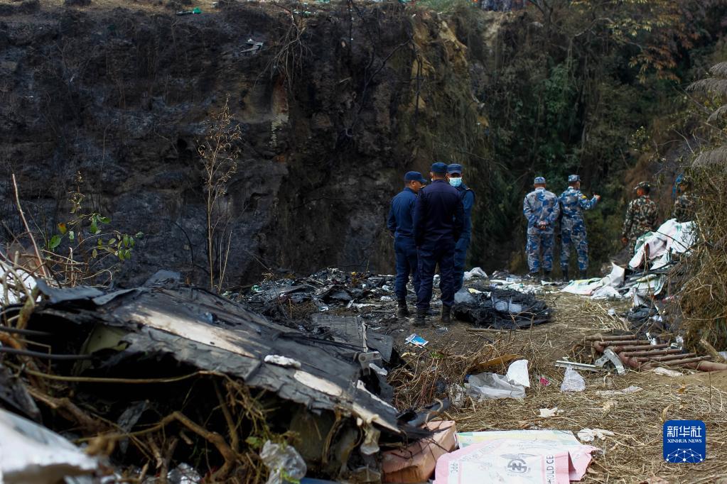 這是1月16日在尼泊爾博克拉地區(qū)墜機(jī)現(xiàn)場(chǎng)拍攝的飛機(jī)殘骸。新華社發(fā)(蘇拉韋爾·什雷斯塔攝)