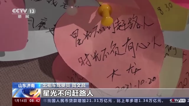 在山東濟(jì)南,出租車司機(jī)周文昌把車頂變成留言板,乘客紛紛寫下心愿,記錄心情。如今,車頂已貼滿五顏六色的便利貼。一張張紙條,學(xué)生、老師、父母、孩子,相愛(ài)的人,素不相識(shí)的人們像在隔空對(duì)話,鼓勵(lì)著自己,也溫暖著彼此。