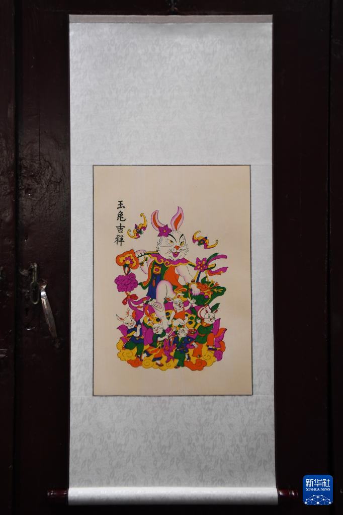 這是1月17日在灘頭鎮(zhèn)福美祥年畫作坊拍攝的兔生肖年畫。