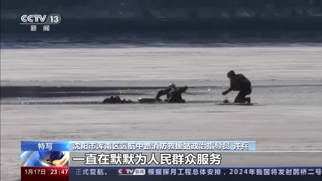 沈陽消防救援支隊遠航中路消防救援站特勤分隊一班班長 趙龍智:我第一時間過去先給老人穿上救生衣,防止他下沉。雖然說他身體凍僵了,但是那老人強撐著最后一點點力氣配合著我們給他穿上了救生衣,然后我就讓岸邊那個消防員拴了根繩,一點點用救生圈簡易地做了一個浮板,就相當于是一個輔助裝置,可以分散那個老人的身體承重力,然后一點點拖到岸邊。