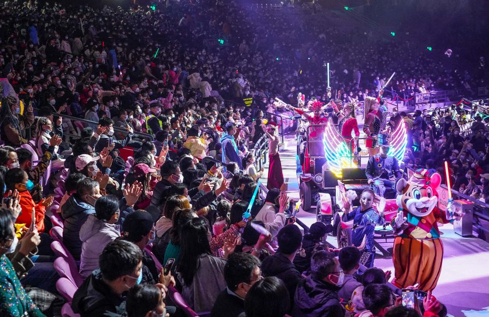 游客在廣州長隆旅游度假區(qū)游園看馬戲表演(2022年12月31日攝)。新華社記者 劉大偉 攝