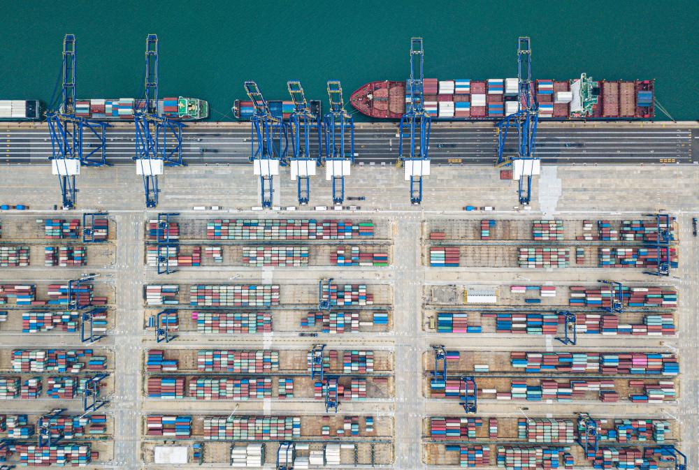 海南洋浦國際集裝箱碼頭一景(2022年11月5日攝,無人機照片)。新華社記者 蒲曉旭 攝