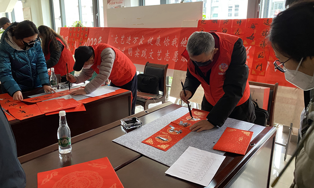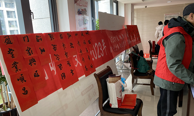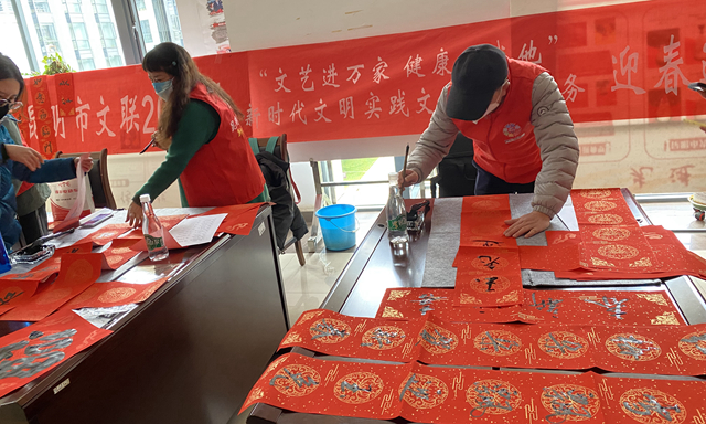 昆明信息港訊 記者甘凌菲 新春佳節(jié)將至,為營(yíng)造歡樂祥和的節(jié)日氛圍,增強(qiáng)干部職工的文化自信,1月18日上午,昆明市文聯(lián)2023年迎春送福文藝志愿服務(wù)活動(dòng)在市級(jí)行政中心舉行。4名昆明書法家協(xié)會(huì)成員現(xiàn)場(chǎng)寫春聯(lián)、寫“?!弊郑瑸楦刹柯毠に蜕狭嗣篮玫男麓鹤8?。