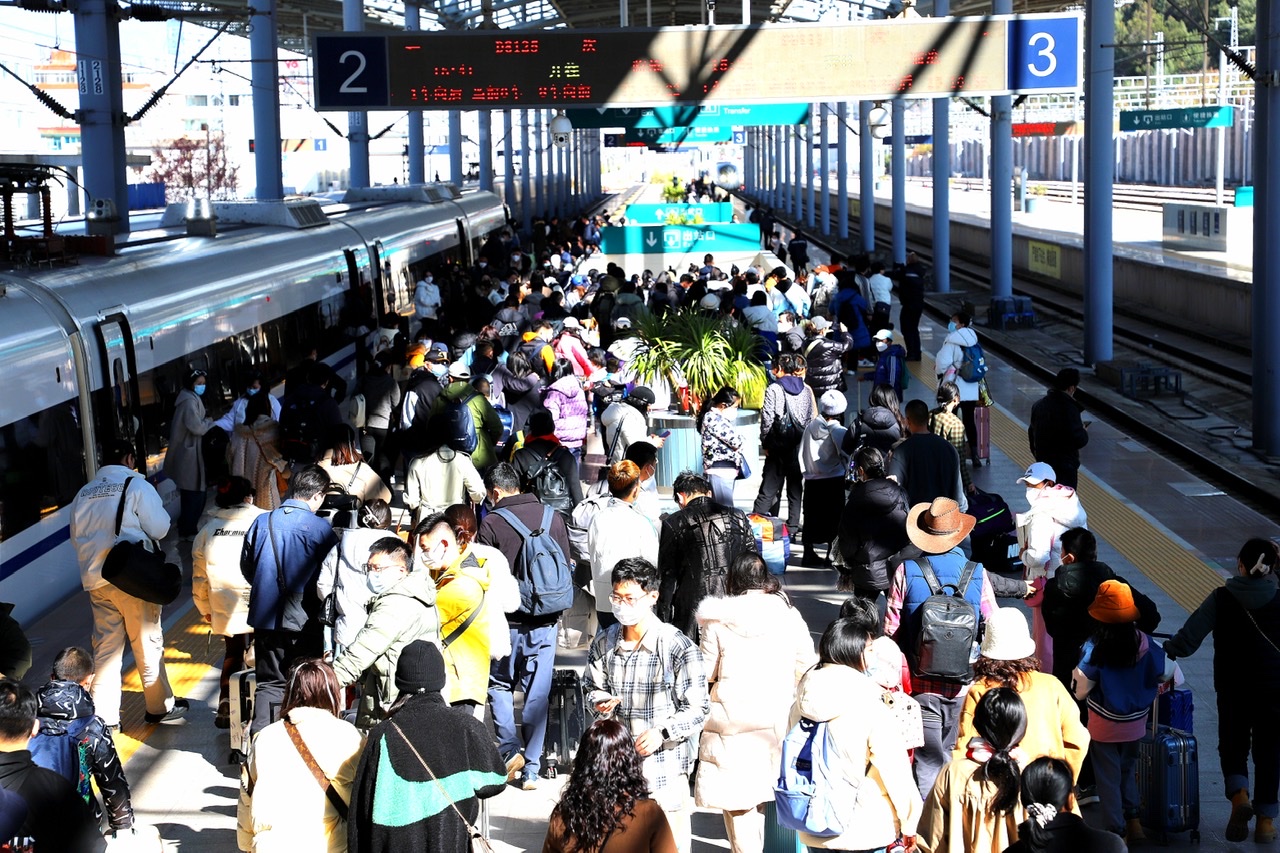 隨著云南各地旅游業(yè)的復(fù)蘇,以及大瑞鐵路大保段、彌蒙高鐵的開通運營,前往大理、麗江、建水、蒙自、河口、彌勒等旅客不斷增多。截至目前,昆(明)楚(雄)大(理)麗(江)線發(fā)送旅客 32.5萬人,大瑞鐵路大保段發(fā)送旅客12.4萬人,彌蒙高鐵、昆(明)玉(溪)河(口)鐵路累計發(fā)送旅客16.7萬人。為此,昆明局集團加大運力投入,全力滿足旅客出行需求,運能由春運首日的172對增加為205對。