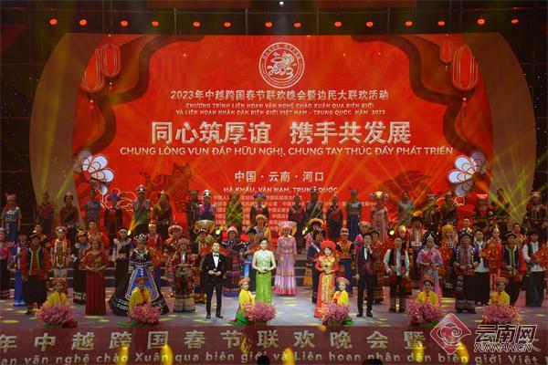 1月18日,以“同心筑厚誼 攜手共發(fā)展”為主題的2023年中越跨國(guó)春節(jié)聯(lián)歡晚會(huì)暨邊民大聯(lián)歡活動(dòng)在紅河哈尼族彝族自治州河口瑤族自治縣舉行。