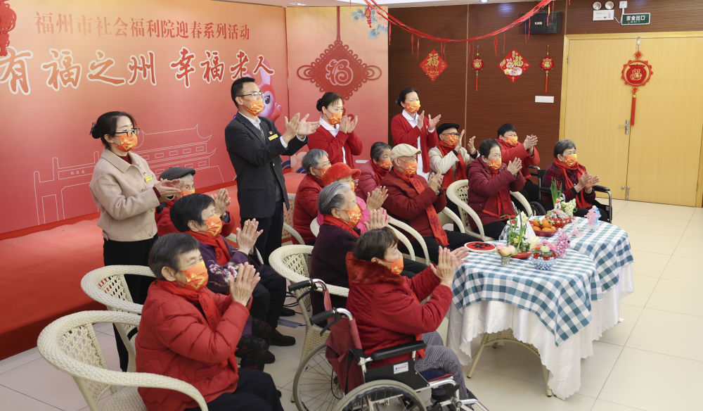 春節(jié)將至,綠樹(shù)掩映的福建福州市社會(huì)福利院內(nèi)張燈結(jié)彩,老年人手工制作的“兔”形工藝品、大紅的“福”字、金魚(yú)飾品琳瑯滿目,處處洋溢著喜慶祥和的節(jié)日氣氛。