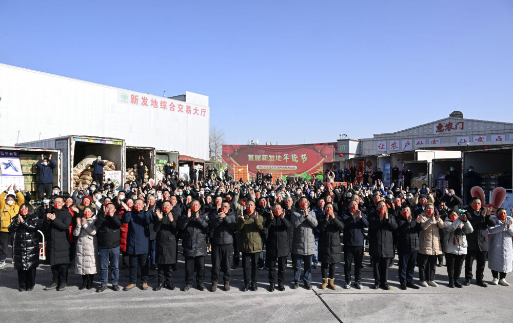 1月18日,北京新發(fā)地農(nóng)產(chǎn)品批發(fā)市場(chǎng)留守的商戶和采購(gòu)年貨的群眾同習(xí)近平總書(shū)記視頻連線。新華社記者 申宏 攝