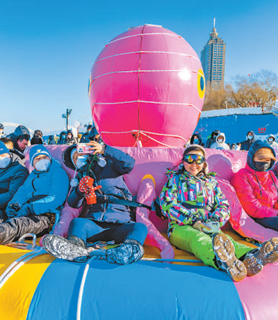 游客近日在哈爾濱松花江冰雪嘉年華體驗冰雪娛樂項目。 全帥攝(人民視覺)