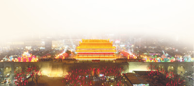 1月14日,西安城墻新春燈會吸引眾多游客登城墻賞花燈。 趙偉鵬攝(人民視覺)