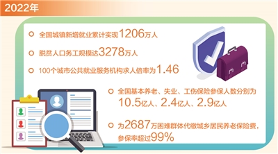 穩(wěn)就業(yè)政策持續(xù)發(fā)力、服務(wù)培訓(xùn)不斷助力、創(chuàng)新創(chuàng)業(yè)帶動就業(yè)……在各方努力之下,2022年就業(yè)局勢保持總體穩(wěn)定,全國城鎮(zhèn)新增就業(yè)累計實現(xiàn)1206萬人。2023年,隨著疫情防控政策優(yōu)化和穩(wěn)經(jīng)濟各項舉措進一步落實,我國經(jīng)濟繼續(xù)恢復(fù),就業(yè)將繼續(xù)保持總體穩(wěn)定。