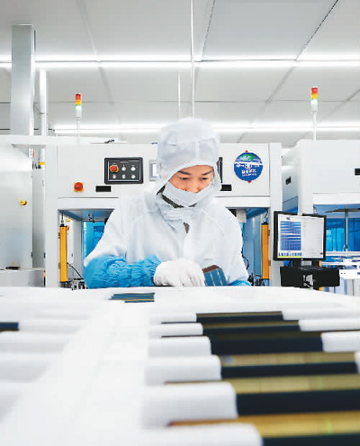 工人在江蘇宏潤光電科技有限公司生產(chǎn)車間忙碌。許昌亮攝(人民視覺)