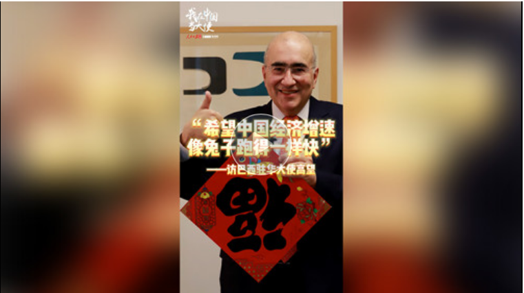 今年是巴西駐華大使高望第一次在中國過春節(jié)。近日在接受海外網(wǎng)采訪時(shí),高望向中國人民送上了兔年祝福。他說:“兔子跑起來很快,兔年希望中國經(jīng)濟(jì)像兔子跑得一樣快,也祝愿中國人民幸福美滿!”