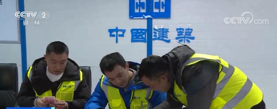 在成都科創(chuàng)新城科幻館項目部會議室,部分工人正在現(xiàn)場排隊領(lǐng)取他們本月度的現(xiàn)金工資。為了讓大家踏踏實實過個年,項目部趕在春節(jié)之前將本月度的工資結(jié)算。