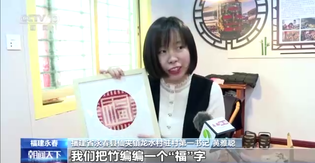 福建省永春縣仙夾鎮(zhèn)龍水村駐村第一書記 黃雅聰:我們把竹編編一個(gè)“?!弊?,做成一個(gè)裝飾畫,非常喜慶。