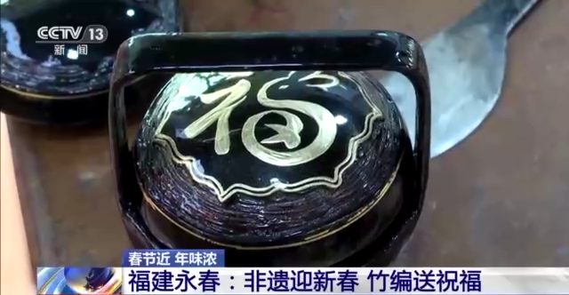 在“中國漆籃之鄉(xiāng)”——福建永春縣,擅長竹編的匠人們現(xiàn)場編起“?!弊?,以獨(dú)特的非遺技藝喜迎新春。