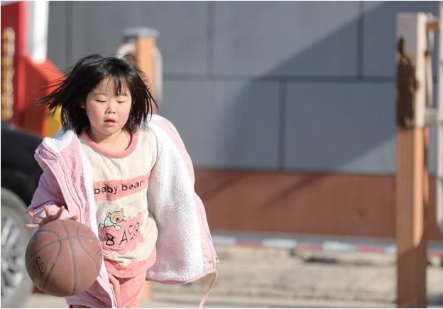 下午氣溫回升,在一個(gè)村口的廣場(chǎng)上,孩子們?cè)陉?yáng)光下嬉鬧玩耍,村民們戴著口罩相互寒暄。