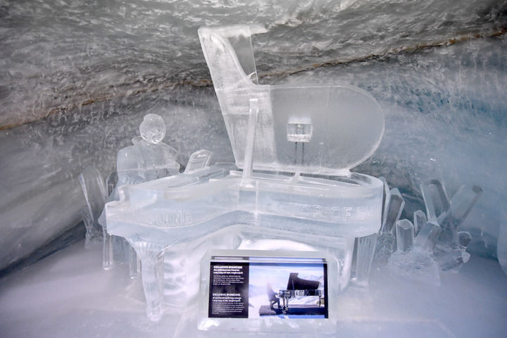中國(guó)鋼琴家郎朗在少女峰上演奏的冰雕。新華社記者連漪攝