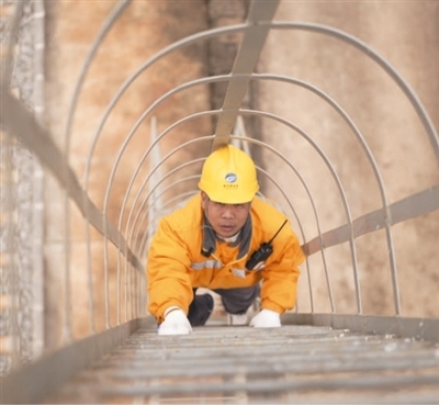 中國鐵路南寧局集團有限公司南寧動車所的接觸網(wǎng)工爬上燈橋,準備開展檢修工作。