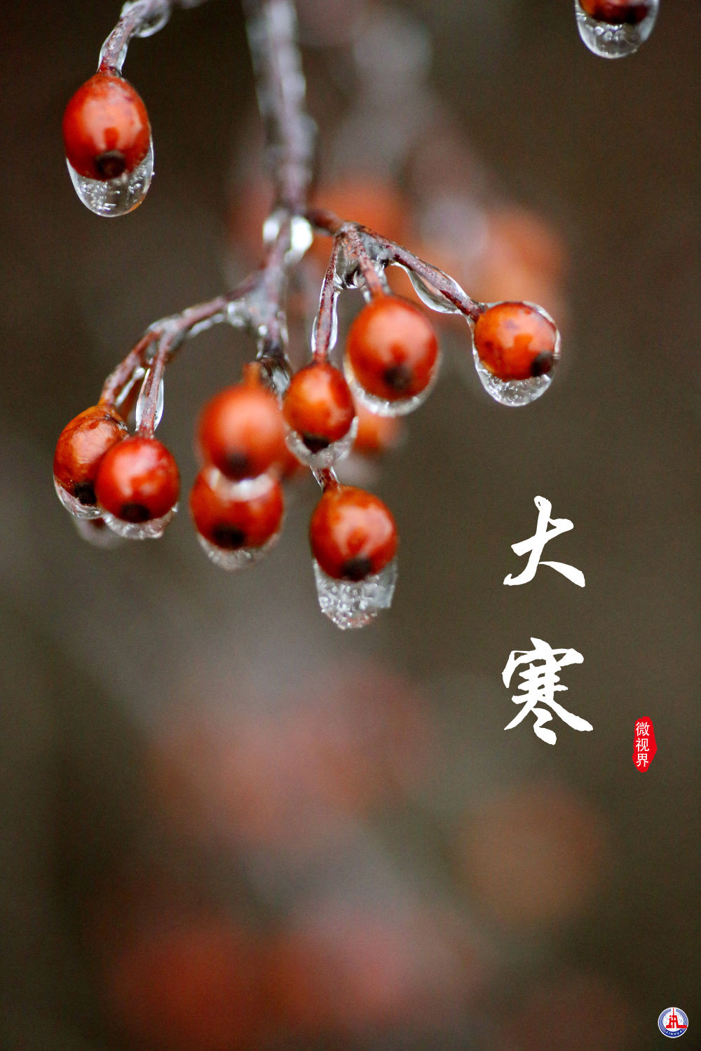 ↑江蘇省連云港市,野生小紅果上掛著冰。新華社發(fā)(王春 攝)
