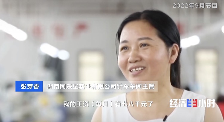 在培養(yǎng)高技術(shù)人才的同時,促進(jìn)農(nóng)民工及脫貧人口就業(yè)創(chuàng)業(yè),是保持就業(yè)大局穩(wěn)定的重要支撐。湖南耒陽經(jīng)開區(qū)一家生產(chǎn)兒童用品的公司,工人們中有一多半以前都在外地打工。2022年年初,聽說老家有工廠招聘熟練的縫紉工,張芽香就決定留在老家。